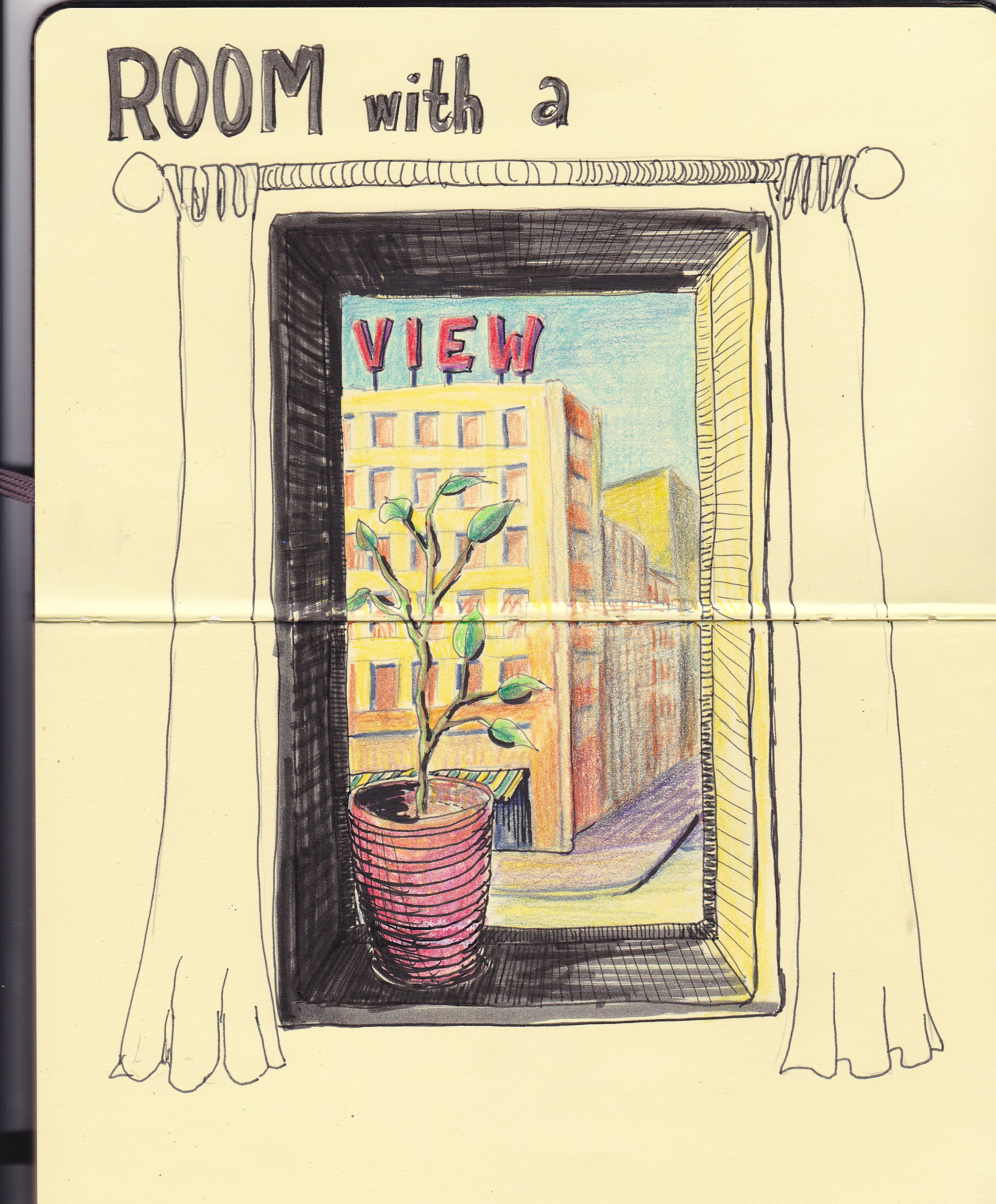 Dat bracht mij ertoe om mijn nieuwe Moleskine schetsboek in gebruik te nemen en deze tekening te maken.