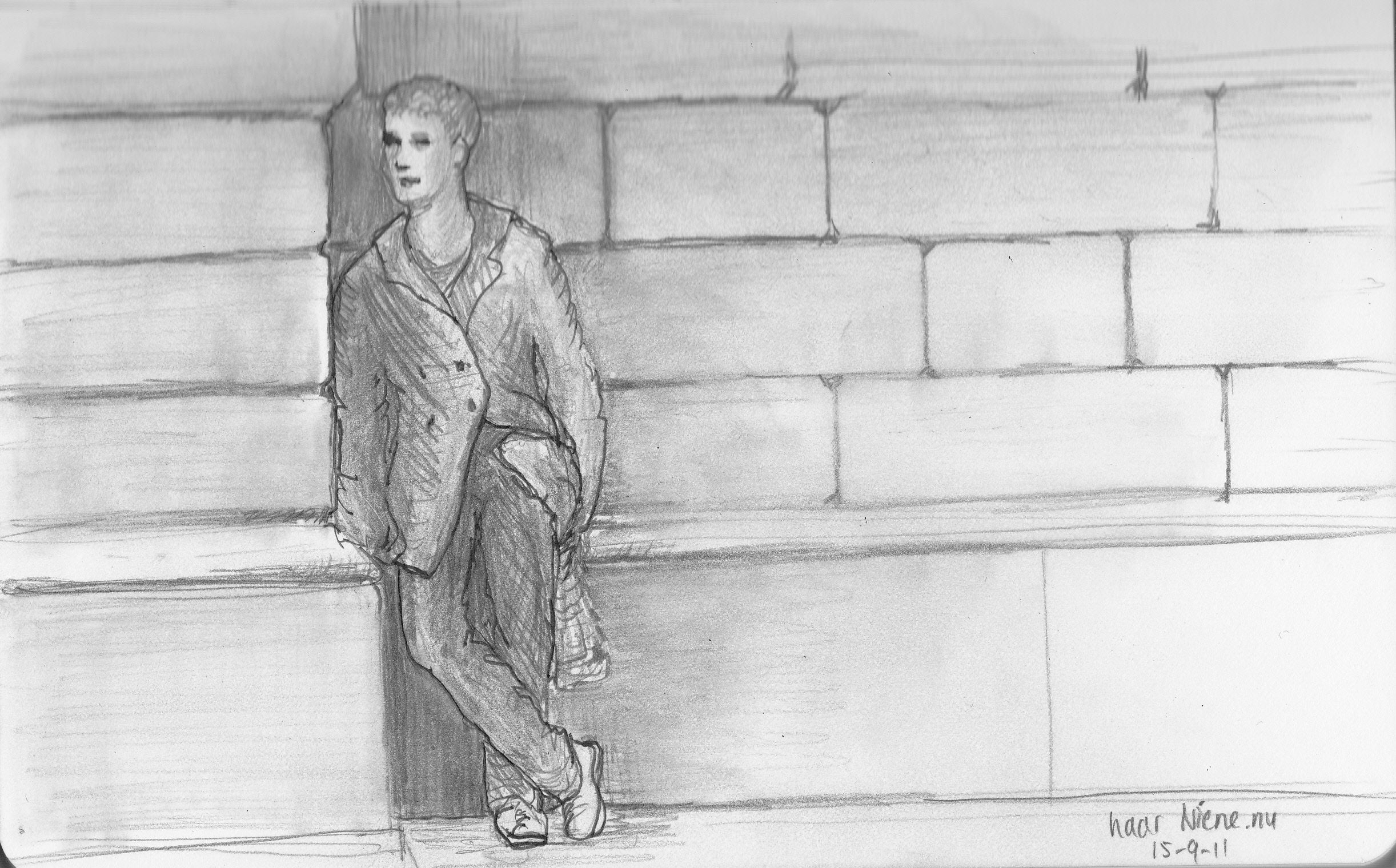 Ik ben van plan om naar de fototentoonstelling van Noorderlicht te gaan. In het magazine van deze tentoonstelling zag ik een foto van Niene.nu met als thema ‘volgende halte’, die mij intrigeerde. Op basis van die foto is deze schets ontstaan.