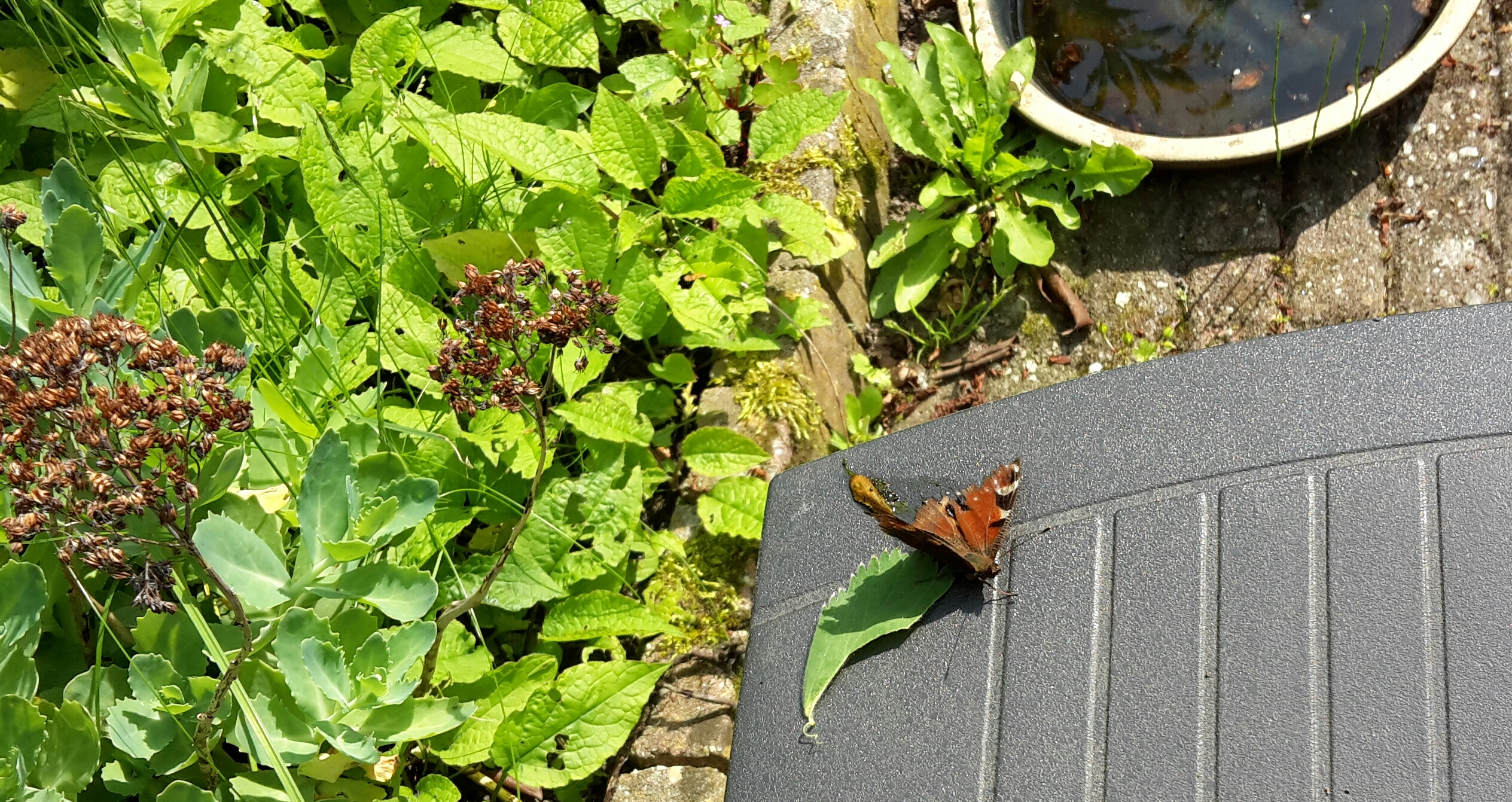 Zojuist heb ik een vlinder gered van de verdrinkingsdood. Ik vond hem gehavend in een bakje met water in de achtertuin. Voorzichtig viste ik hem er met een blaadje uit. Vliegen kon hij nog niet, daarvoor waren zijn zachte vleugels te doorweekt. Ik legde hem in de zon te drogen. Hij flapperde even moedeloos met zijn vleugel alsof hij ‘laat maar’ tegen me zei en bleef toen stil liggen.