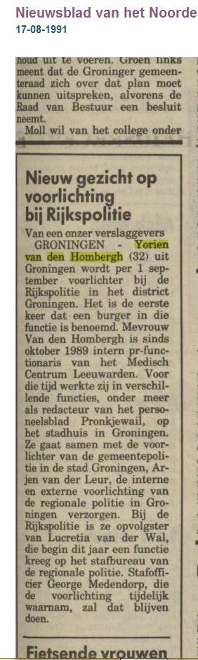 Ik werkte lang bij de overheid en semi-overheid . In 1991 stapte ik een interessante wereld binnen (Politie Groningen) en daar schreef ik persberichten, journalistieke artikelen, nota’s, en hielp actief mee aan de fusie tussen gemeentepolitie en rijkspolitie. Ook schreef ik beleidsplannen, beoordelingsrapporten, strategische adviezen en meer van dat spul. Een tijd lang zat ik (als enige vrouw) in het managementteam omdat ik verstand had van persvoorlichting, strategisch communicatieadvies en corporate public relations en hoofd was van de afdeling die zich daarvoor inzette. Ook was ik voorzitter van het landelijk overleg Politiecommunicatie met alle 25 hoofden communicatie van de politie in Nederland.